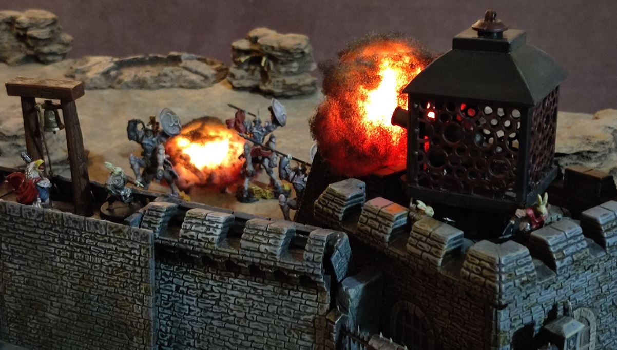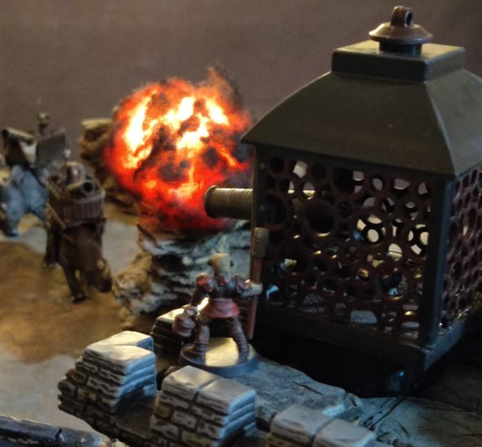 A second shot hurtles straight for one of the gate's turrets, manned by Kit Carson, veteran cannoneer.