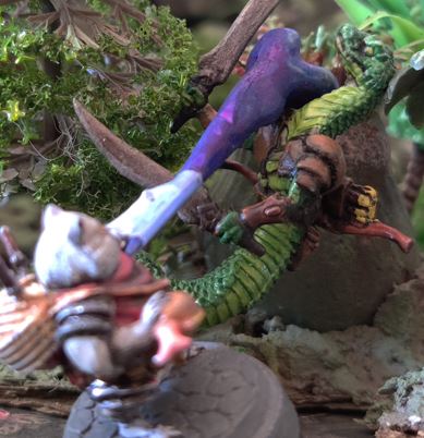 stumbles, and Squalor stays with him, blocking the Spinecones' thorny