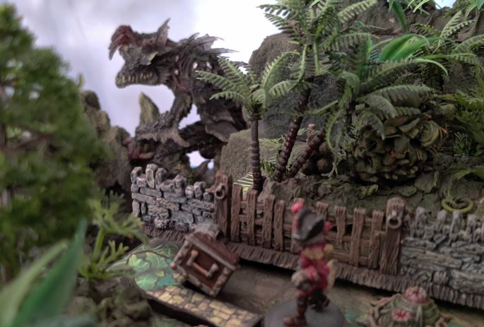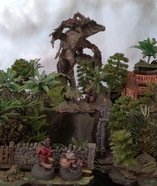 The behemoth smashes its way in! Cap'n wedges himself into the cliffs below the ruins...