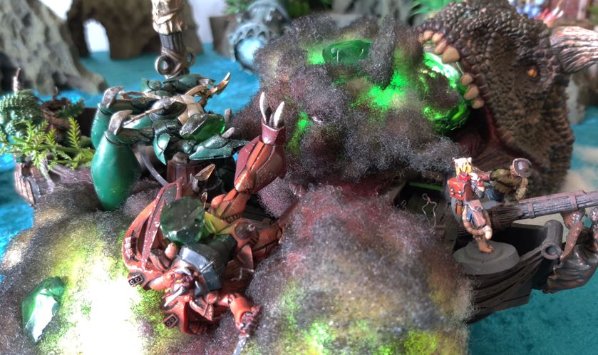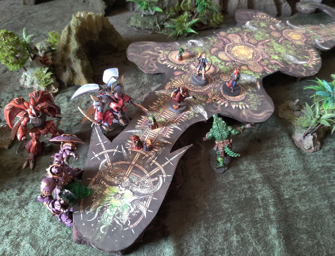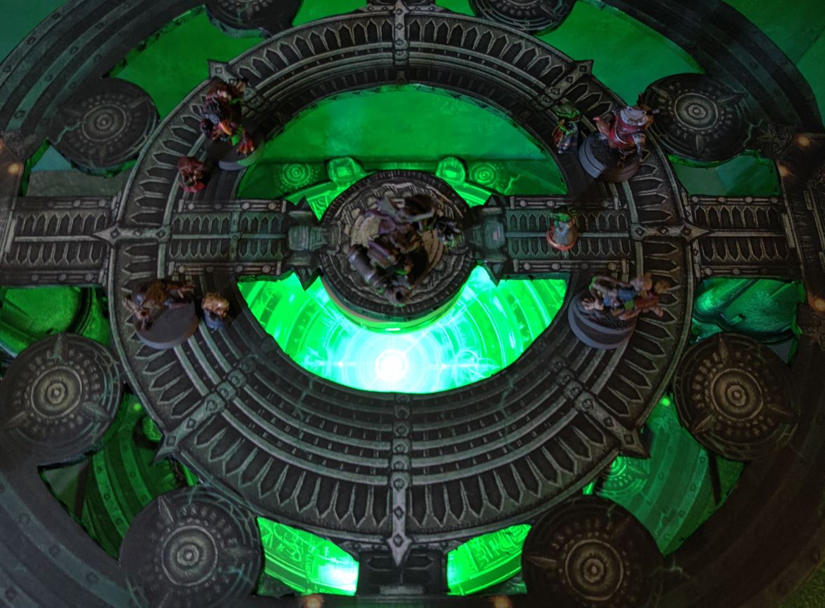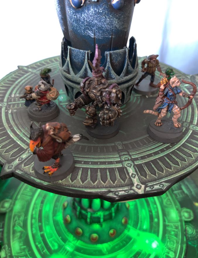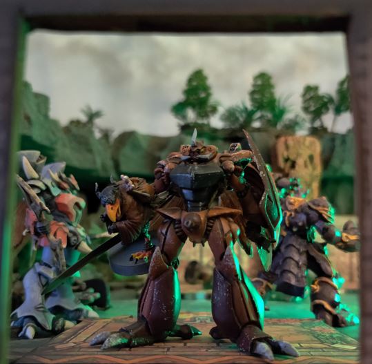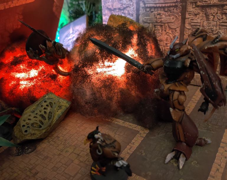 Griff smashes one of the bigger brutes off the plinth with his Auran's sword, clearing a path to the Vitriol.