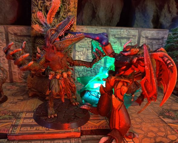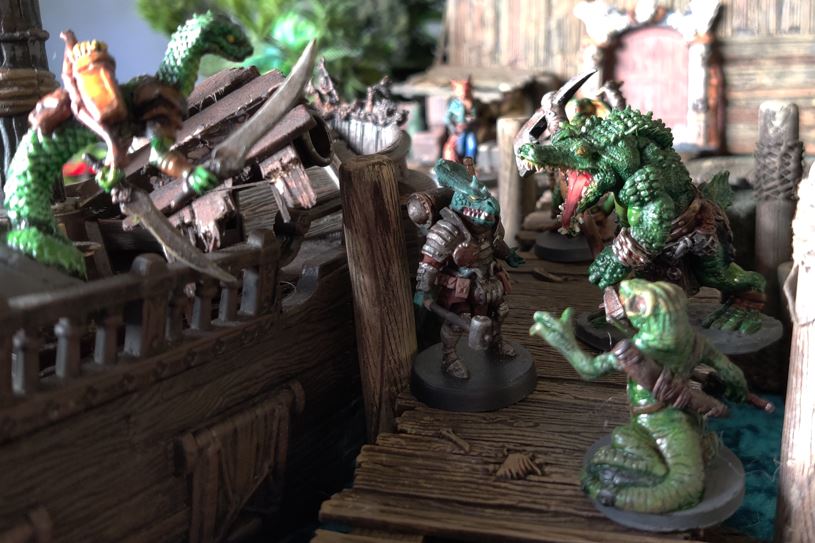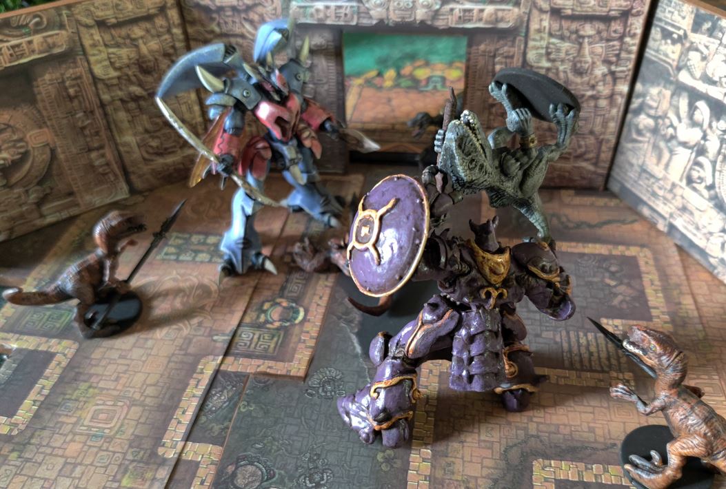 Sauran warriors fill the chamber, attacking from all directions! Squalor manages to stage-dive onto four Saurans at once.