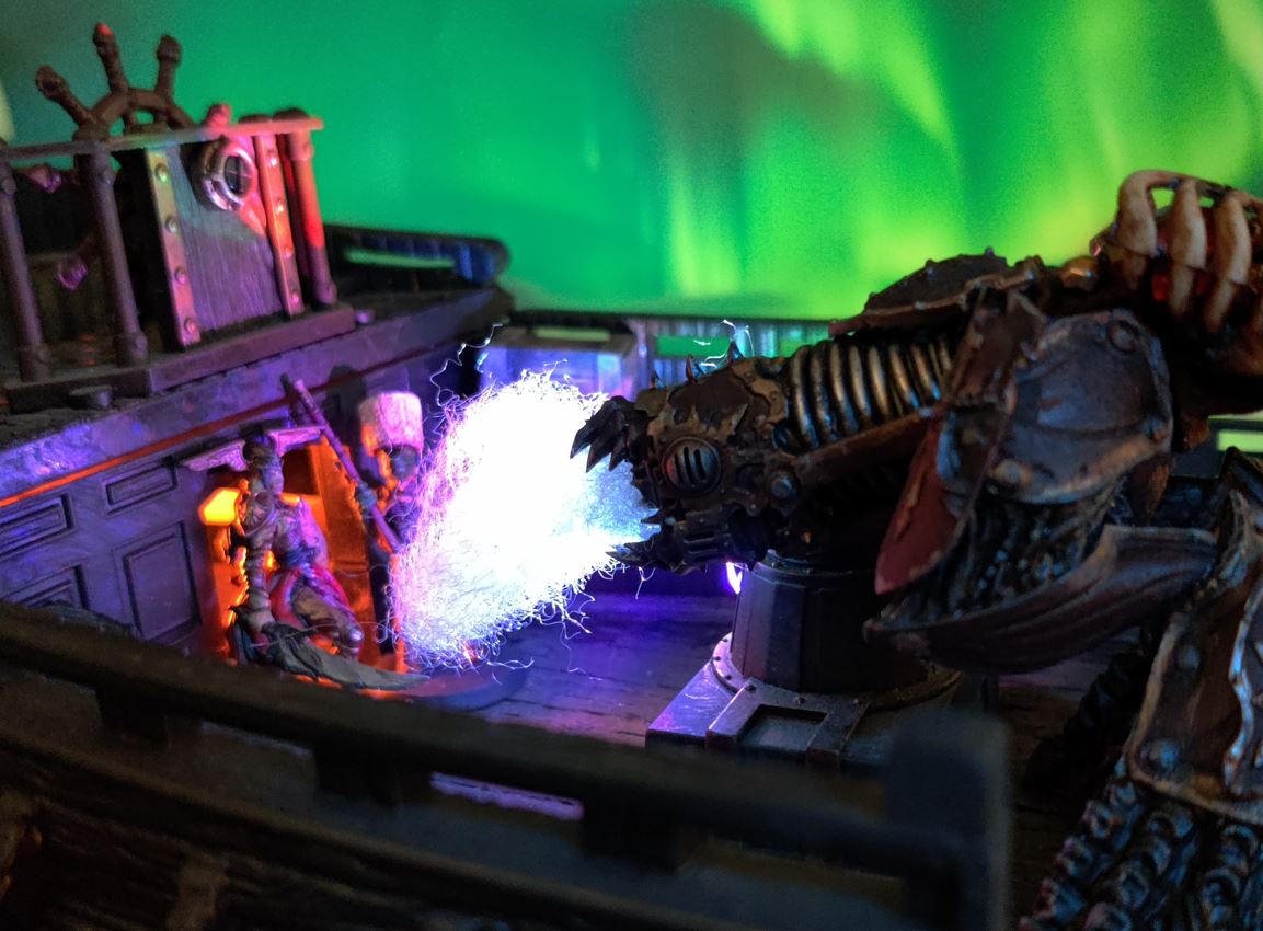 The Devourers board and open fire, bathing Dima's crew in lurid ghastly energy that leaves behind only bones!