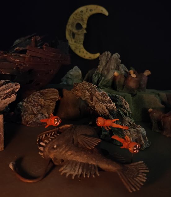 In the distance, the remains are set upon by even stranger creatures...
