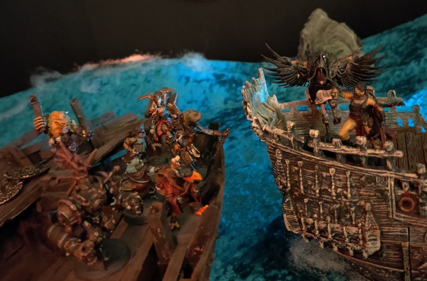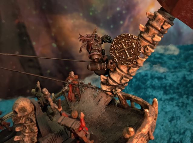 The Jugger charges, Tara barely pivoting aside in time. Mayne guides the Jugger's charge right into the side of the ship!