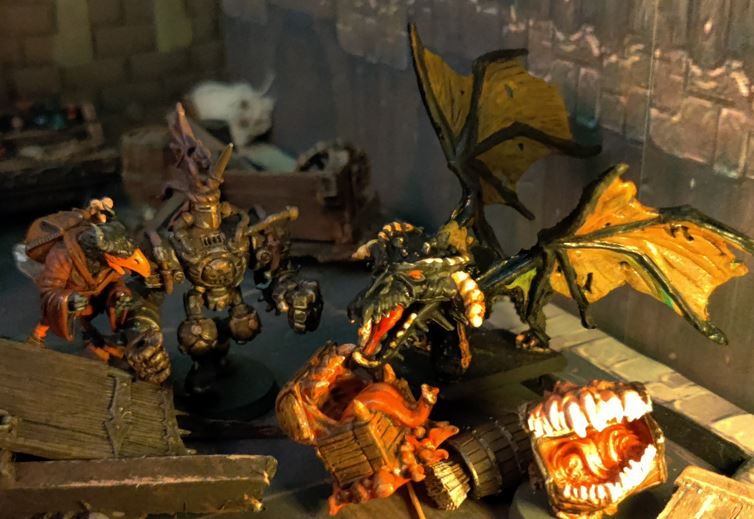 One Drakewyrm evocative of the Void Dragon makes a tasty snack of the Mimics.