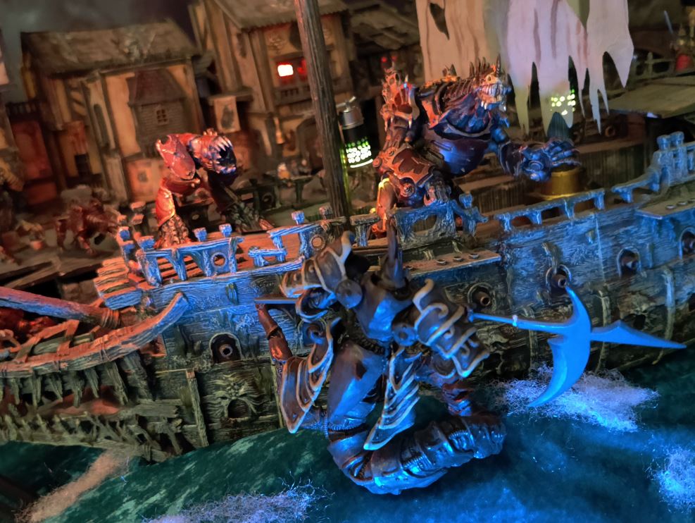 ...and knocking Juggers and Devourers off the docks on his way!