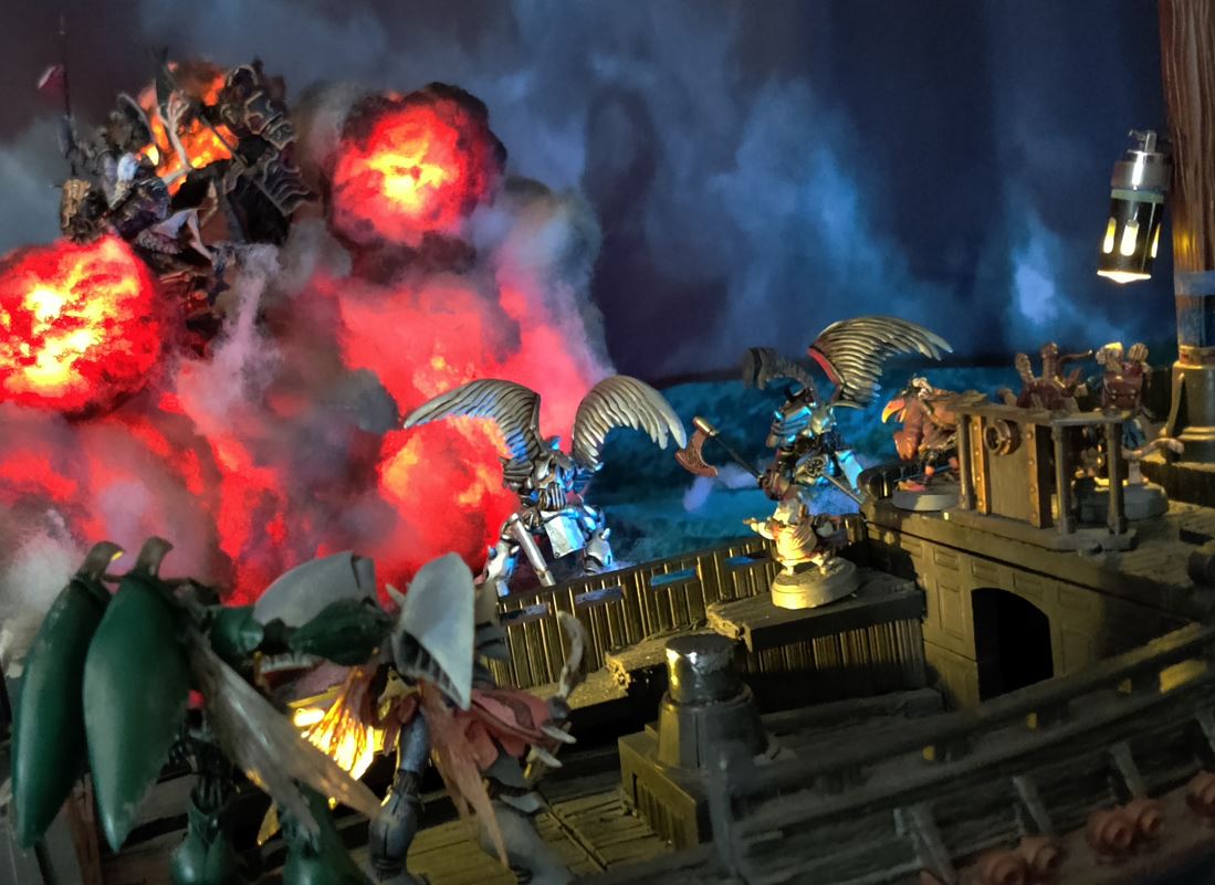 Griff lobs grenades on deck to help send the Hellsau on its way, and Squalor barely manages to hold on!