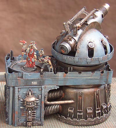Mix brass and steel for a bronze metallic color and drybrush this over all the dark brown areas. Gently drybrush steel over everything, taking care to highlight the