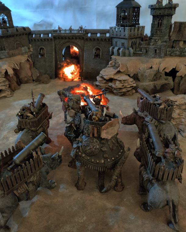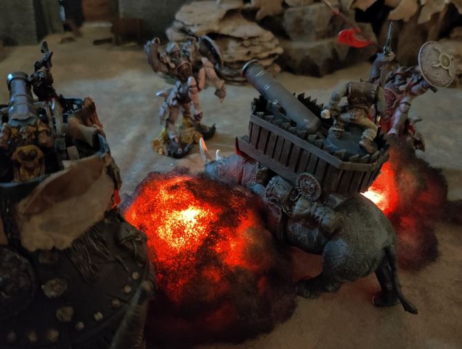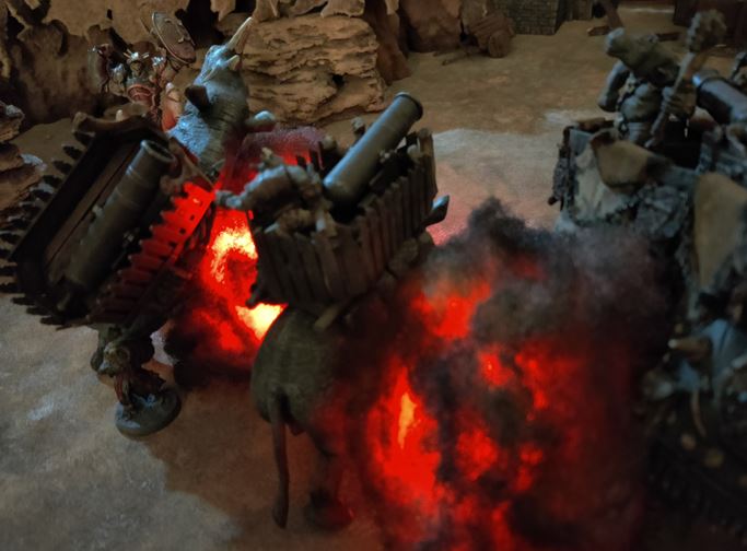 Purket, Tara, and Griff flank the Beastmasters and use their Panzers' flame jets to bathe the Beastmasters in fire.