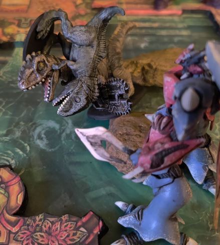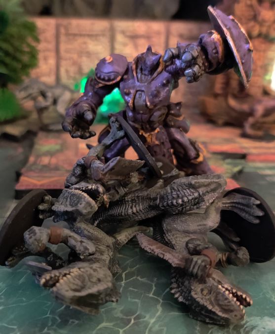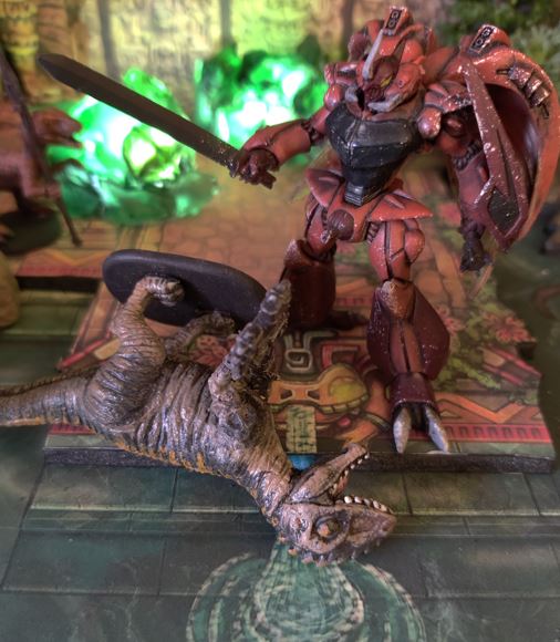 Sauran warriors fill the chamber, attacking from all directions! Squalor manages to stage-dive onto four Saurans at once.