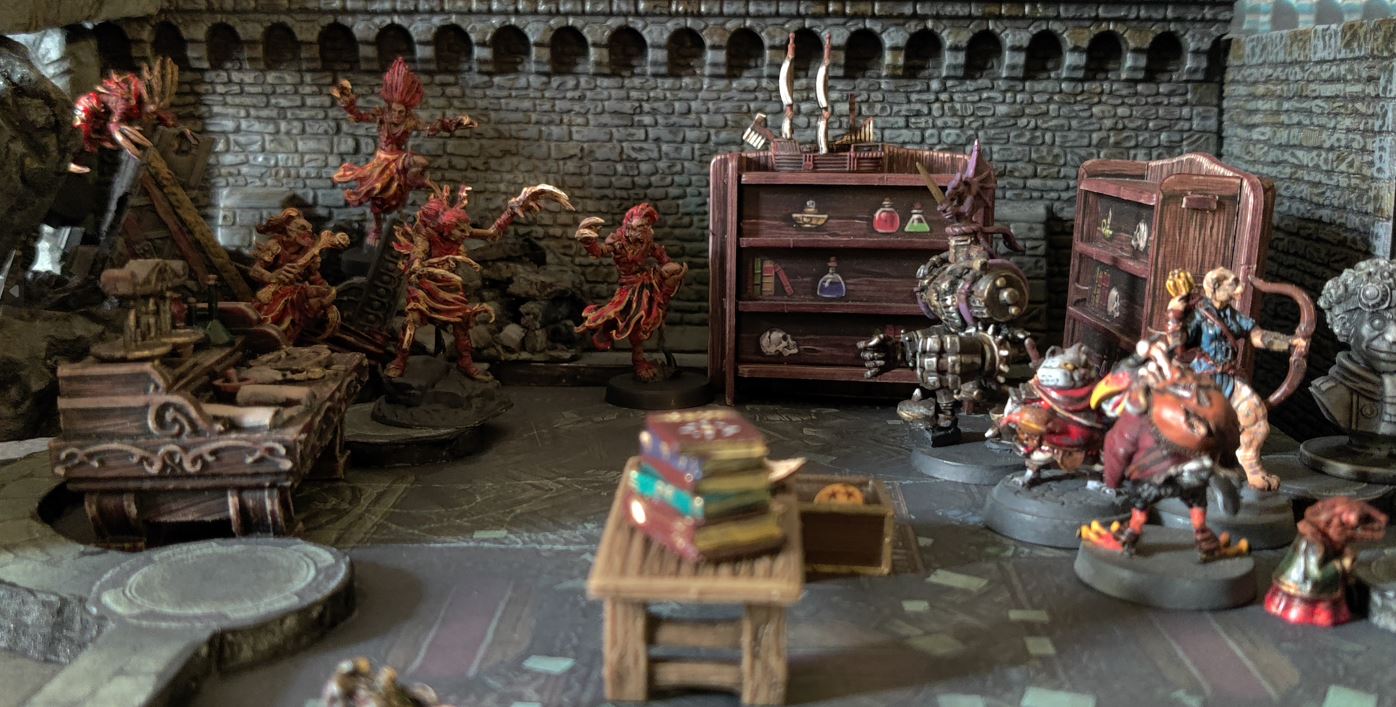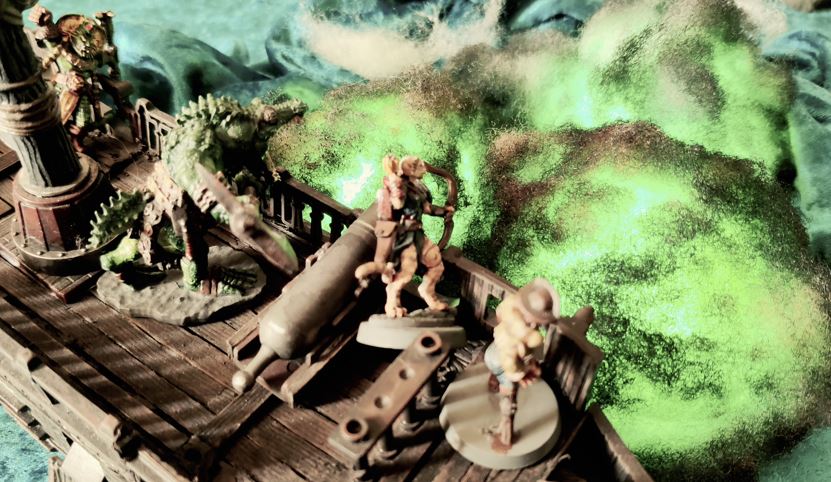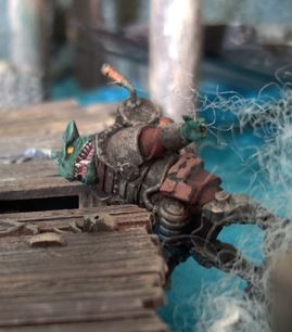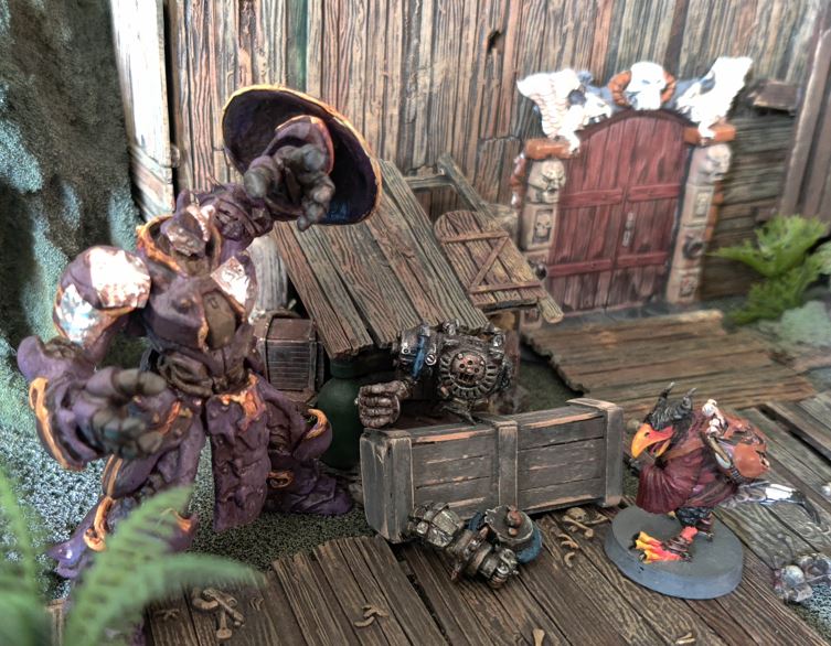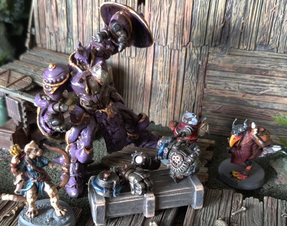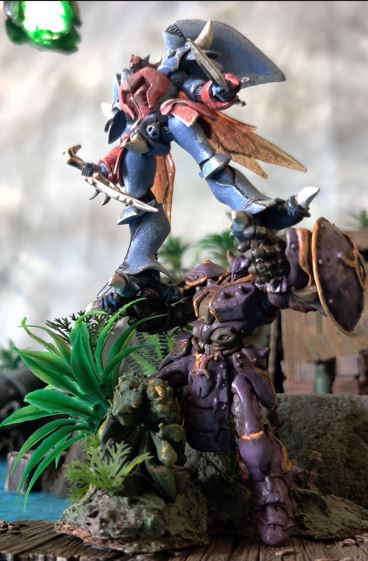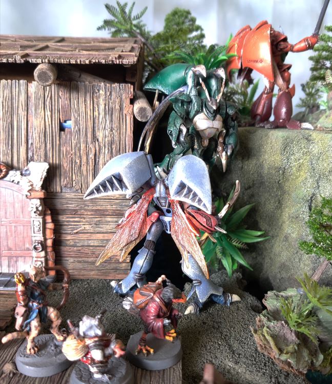 Griff smashes one of the bigger brutes off the plinth with his Auran's sword, clearing a path to the Vitriol.