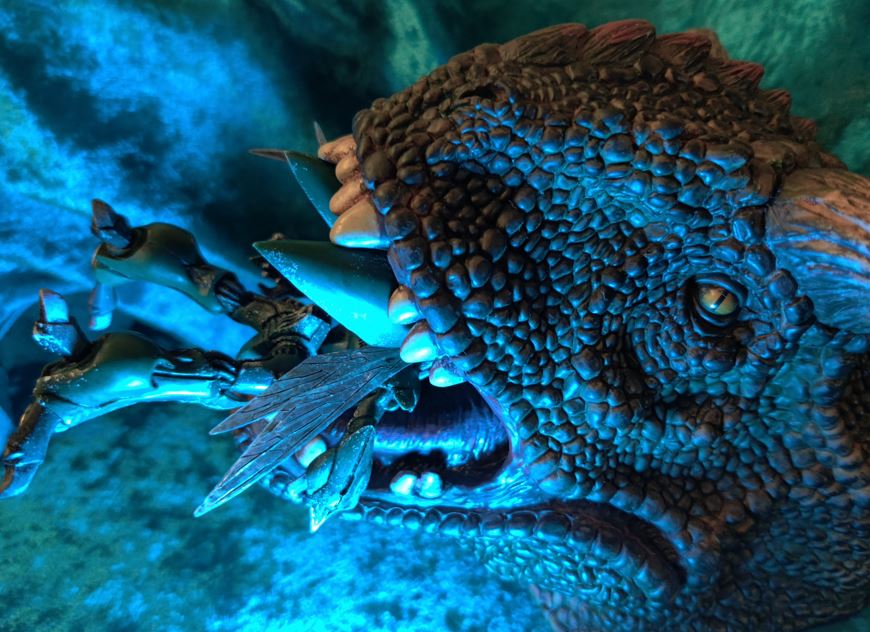 The transformation complete, an even more massive and hideous form of Graum surfaces, and chomps the Investigator in half!