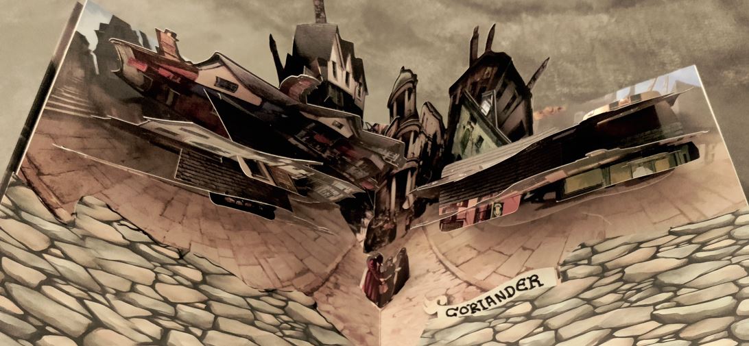 As Purket opens the pop-up book to a page labeled Coriander, a small town unfolds- and everyone is pulled into the book!