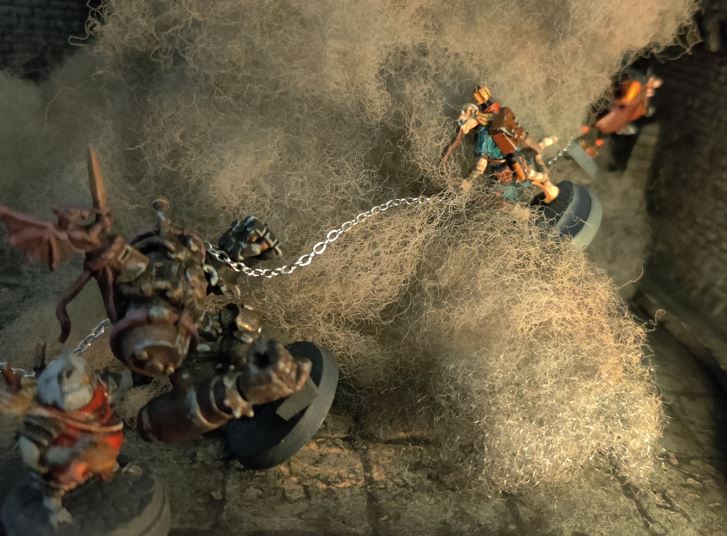 The crew creep cautiously forward, and come across several Chainwrasps- half metal, half bone guardians of the dead!