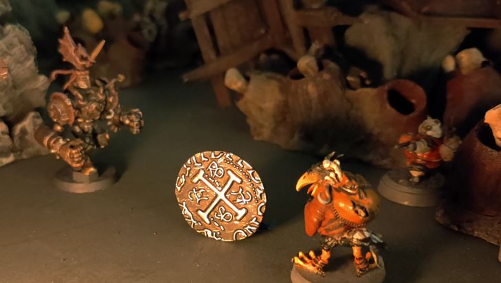 Before Squalor can help, Purket pulls with all his might, and the coin leaps free and begins to roll away....