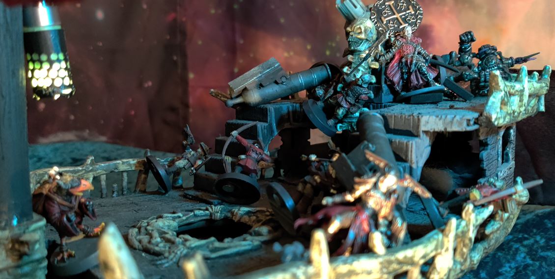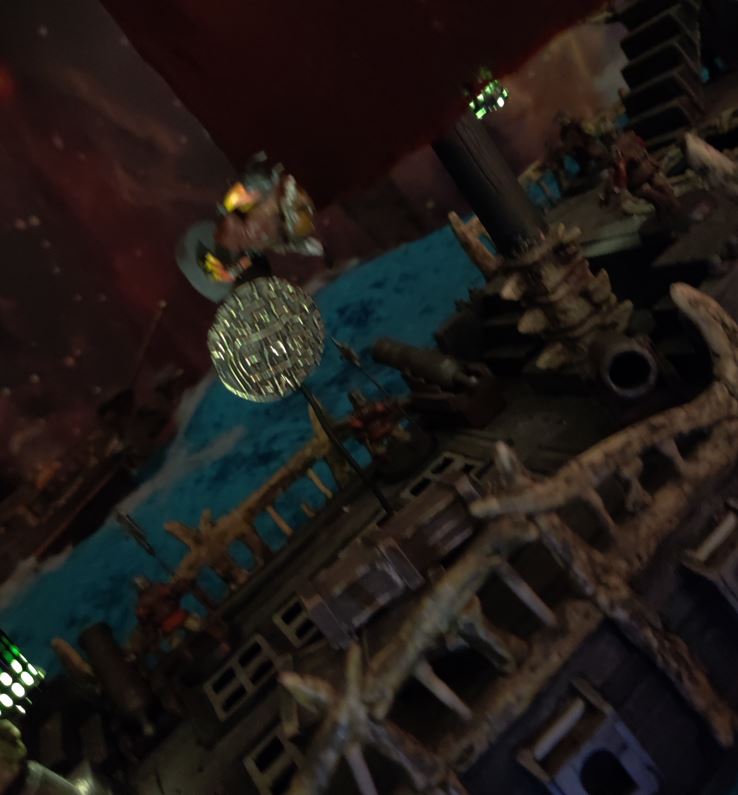 The Jugger charges, Tara barely pivoting aside in time. Mayne guides the Jugger's charge right into the side of the ship!