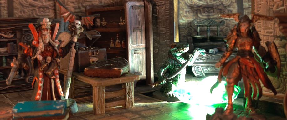 Inside, imitation artifacts and tchotchkes everywhere, right down to the sauran temple wallpaper.