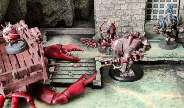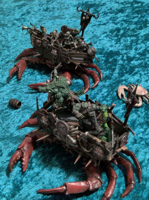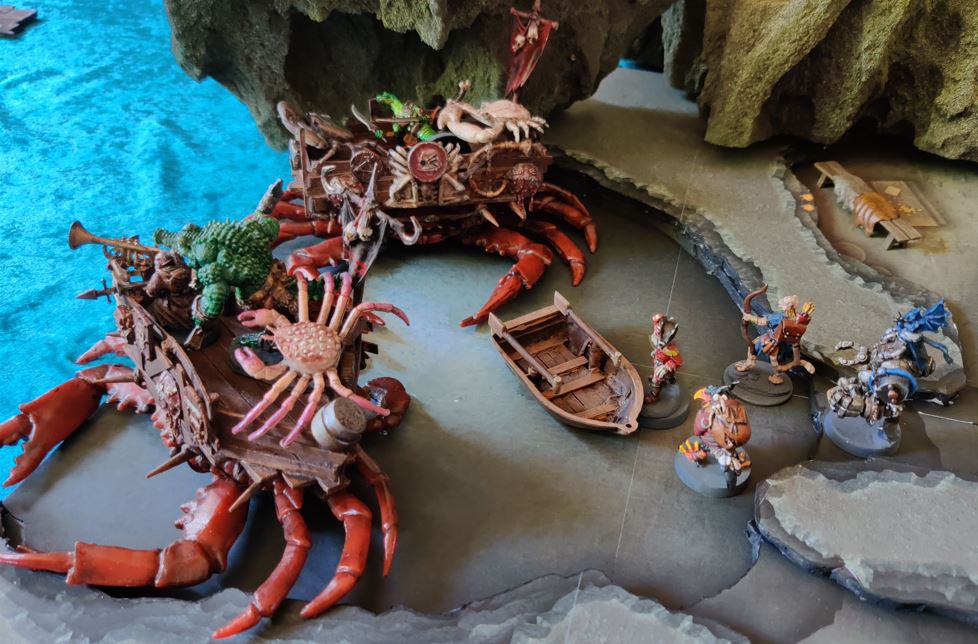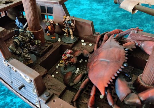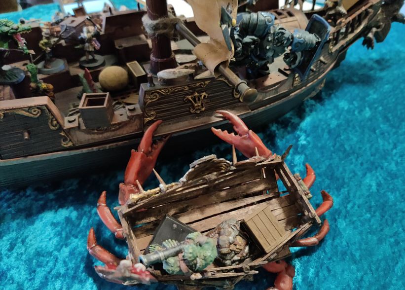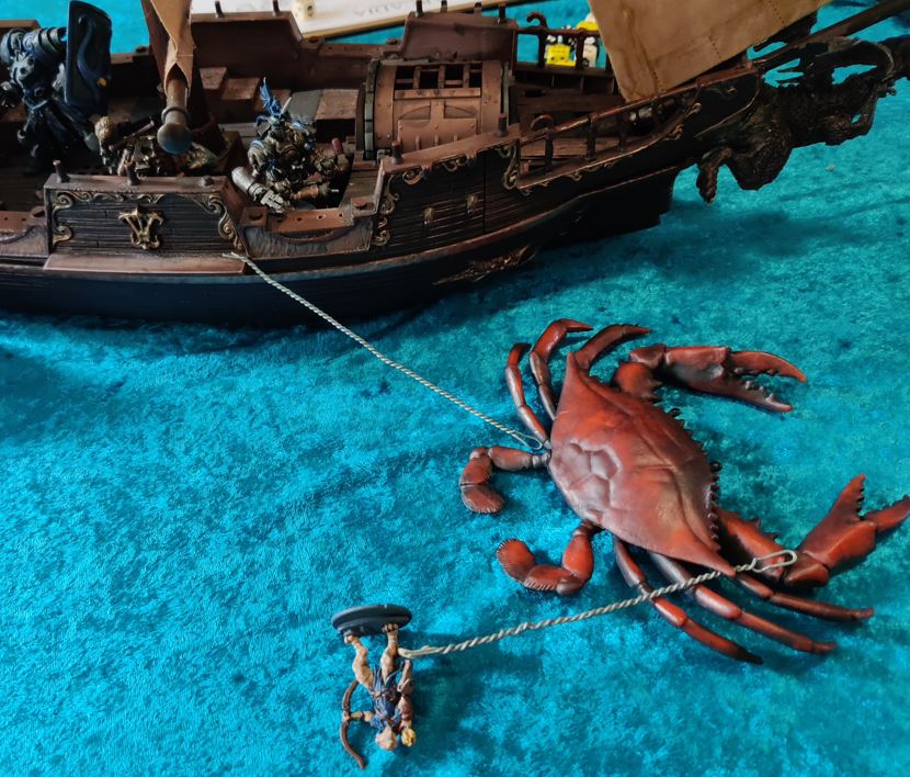 But en route, under the shadow of darkness, Crimson Crab pirates find them!  Two siege crabs surface silently nearby...