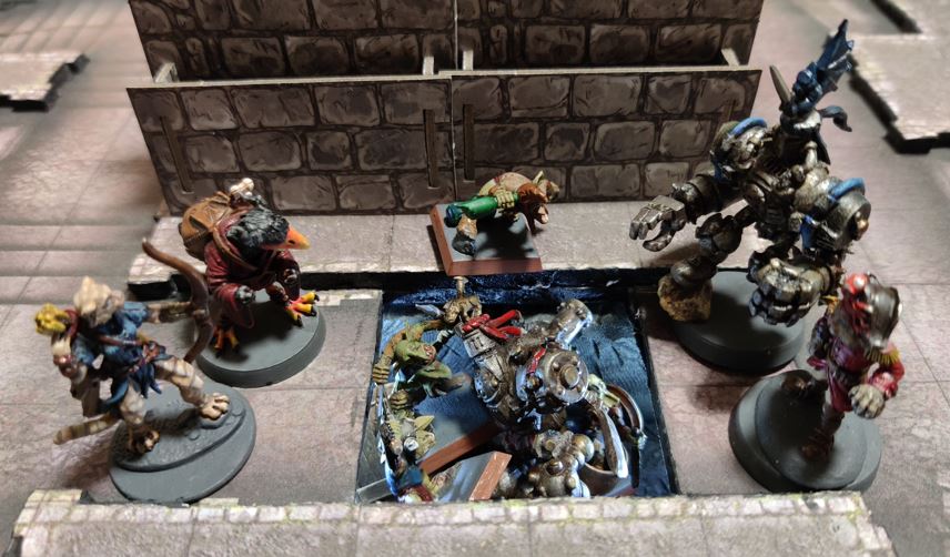 The crew and the Gribblins charge the next room, making short work of the Pirates there.