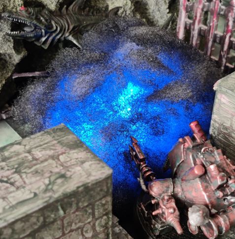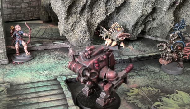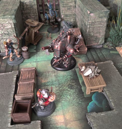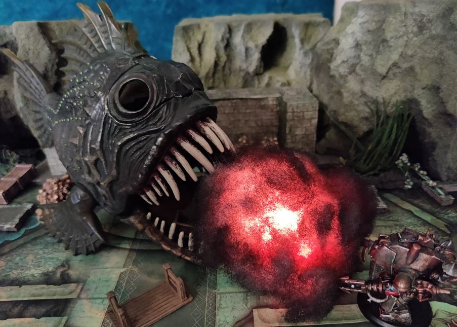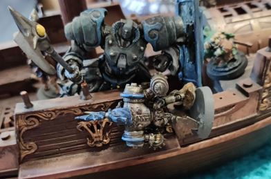 In the main chamber of the ruins, it becomes even more apparent the structure was never intended to be underwater, nor is it a temple.  More like an ancient Panjandran Weapons factory.  Griff locates a crate of unassembled Torpedos, and Squalor finds a Lance big enough for a Panzer.