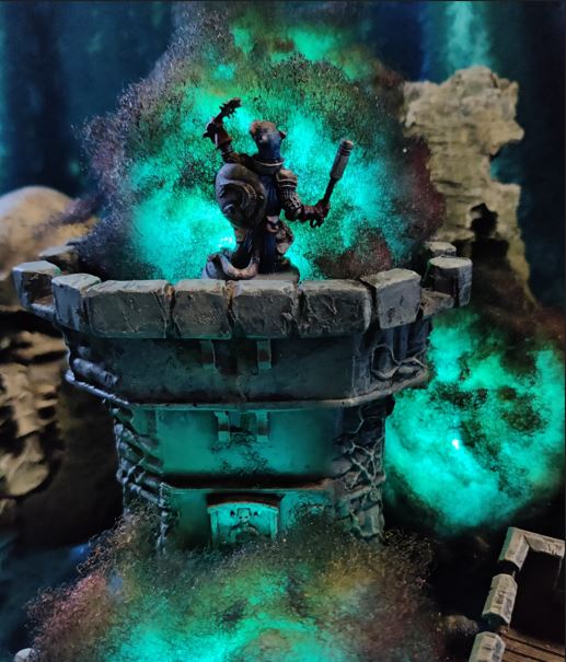 Just then the crew see a searing flash of  green light blast out of the top of the ruins on top of Agrippa island:  Tara's spell has gone catastrophically wrong, and vanishes in an unearthly explosion.   All that is left is the magic talisman, which clatters down at the feet of Purket as everyone gapes in horror.