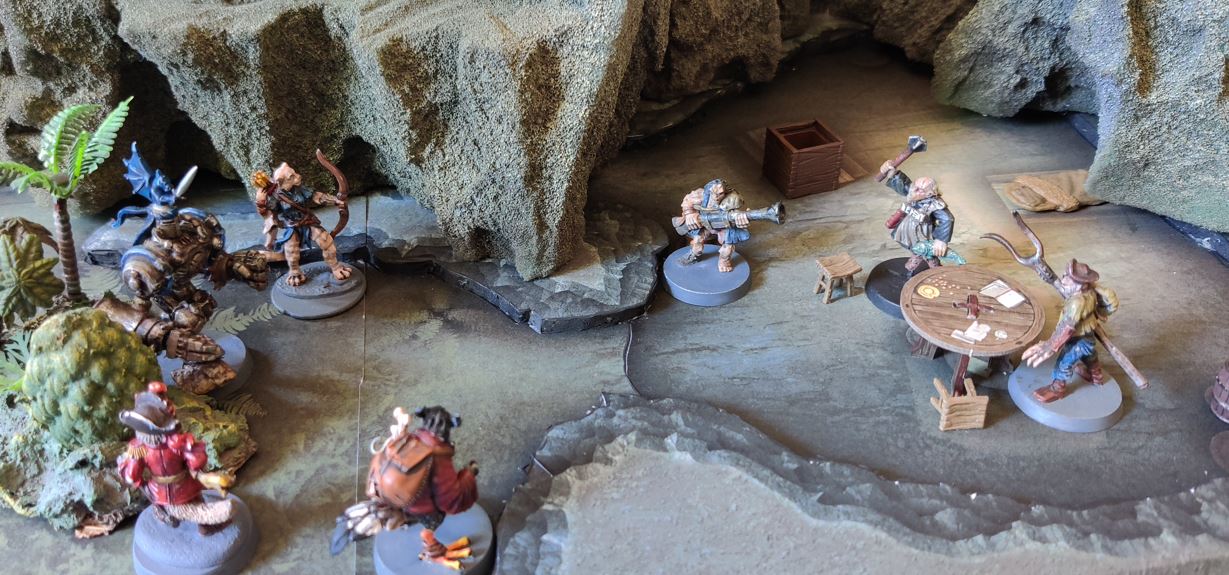 Despite their loss, the crew agree to pursue the Crimson Crab pirates to their lair.  The trail leads to a desolate island cave where pirates can be heard.  The crew lure the pirates outside and ambush them.