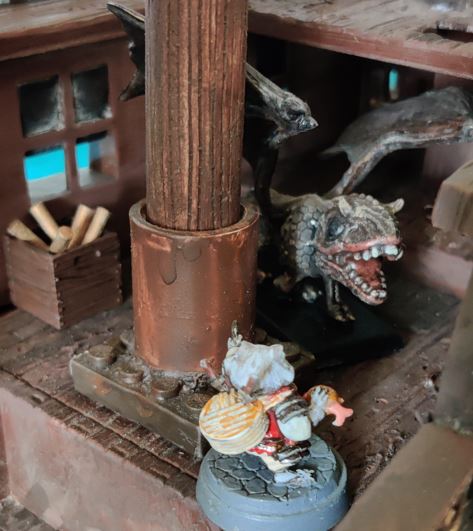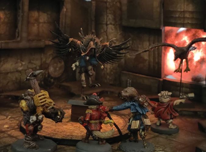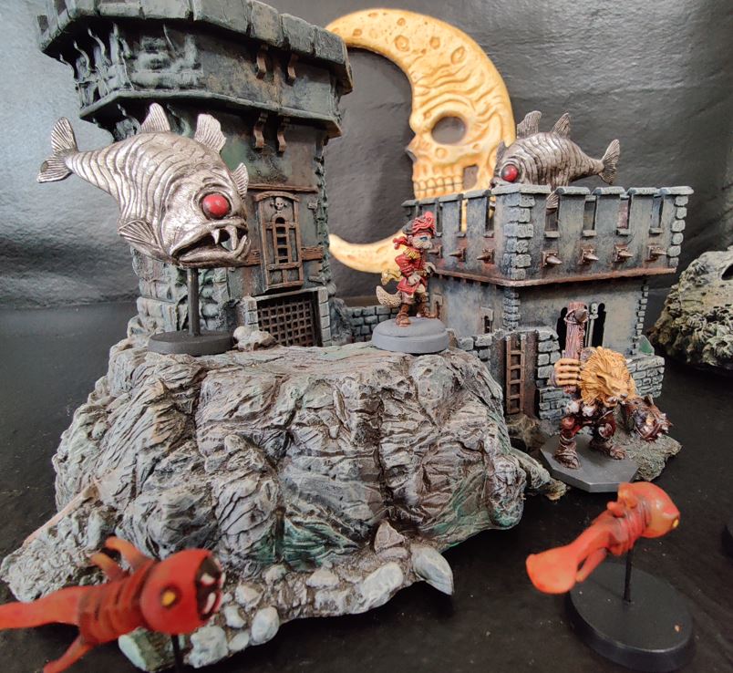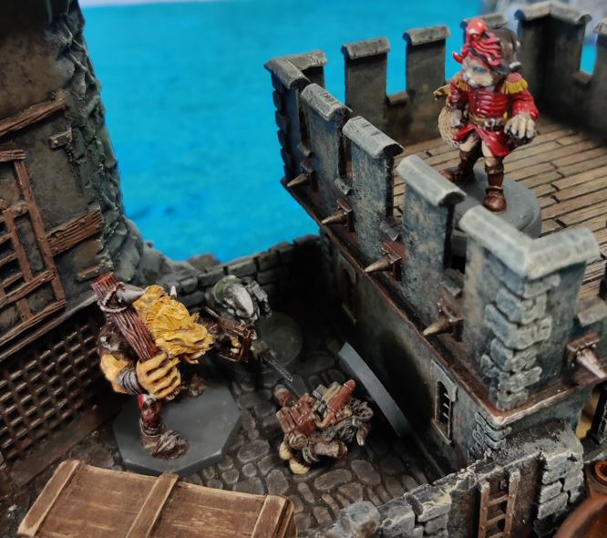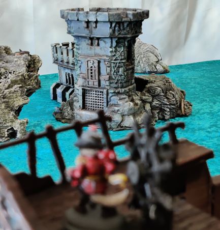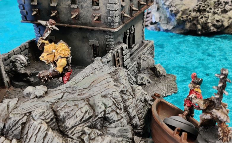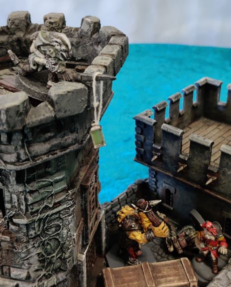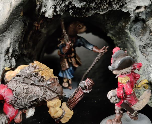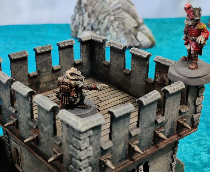 Cap'n deftly scales the Fort tower, surprising the Ratfolk scout on station there.