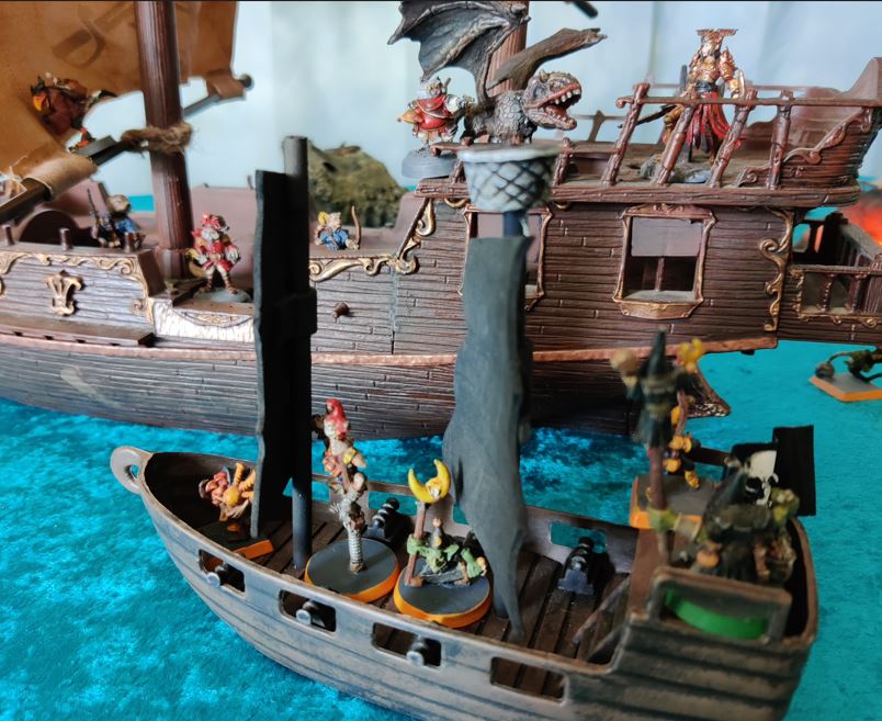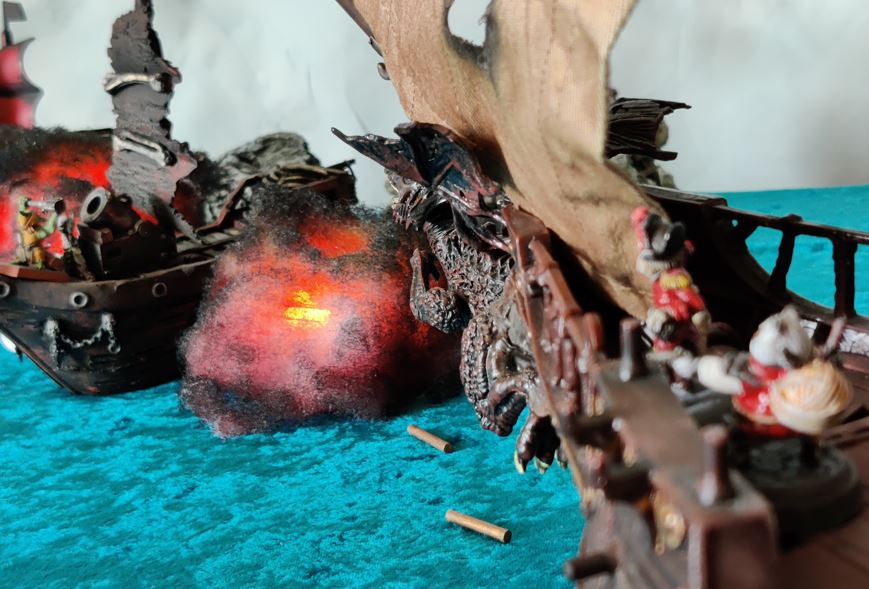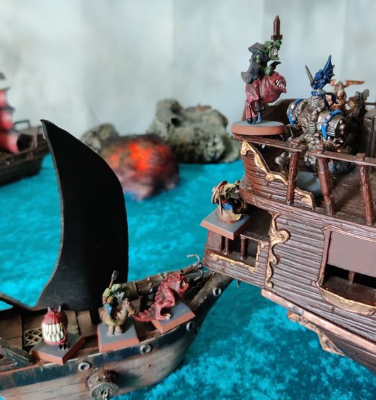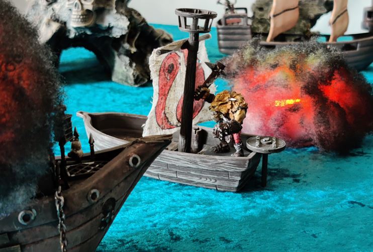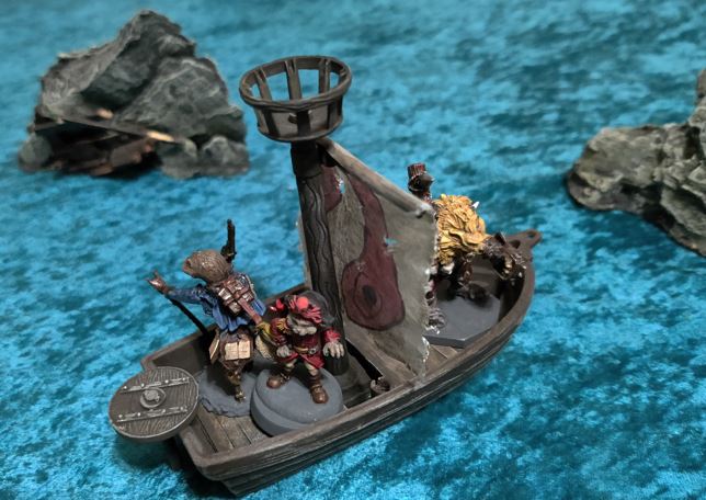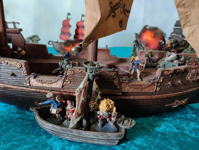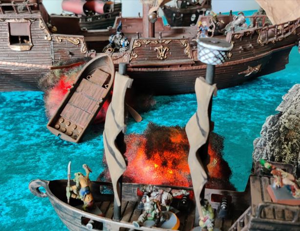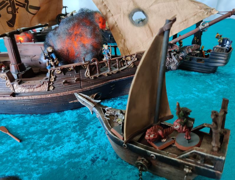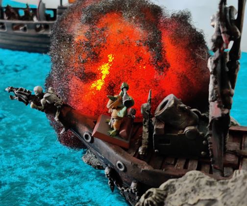 ...just as their rowboat is blown apart by Grabblin mini-Brigantine Broadsides.