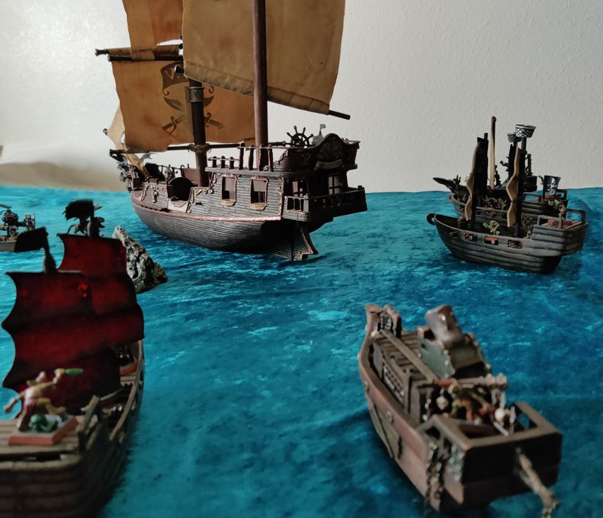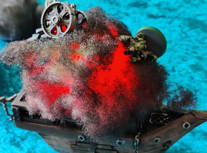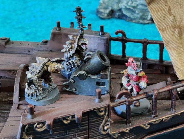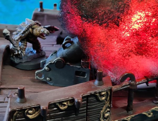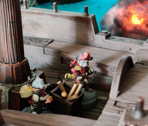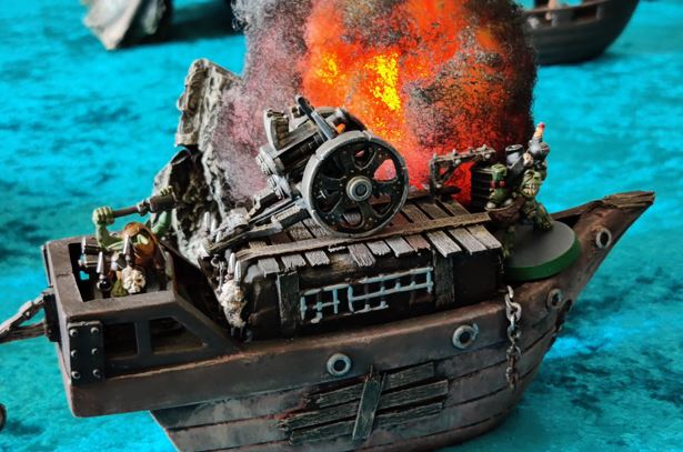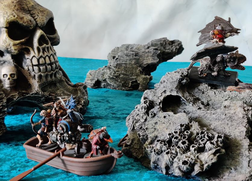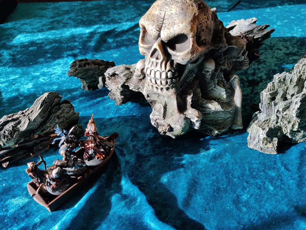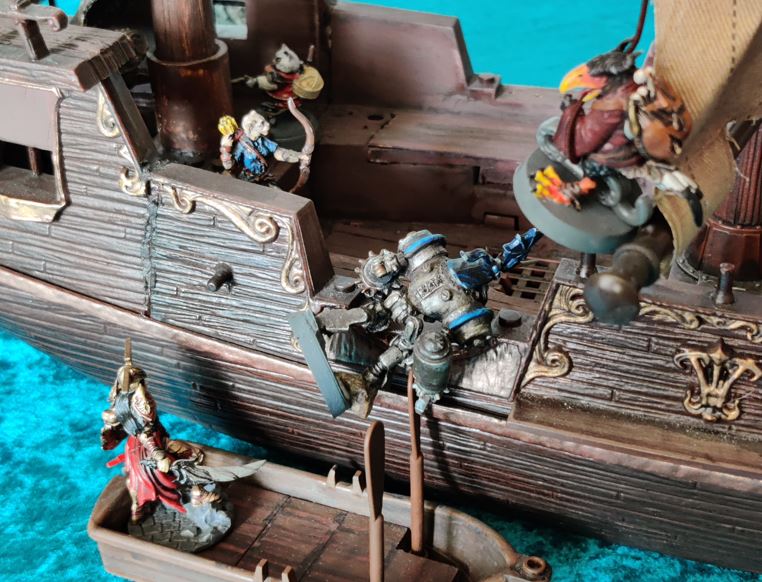 ...just as their rowboat is blown apart by Grabblin mini-Brigantine Broadsides.