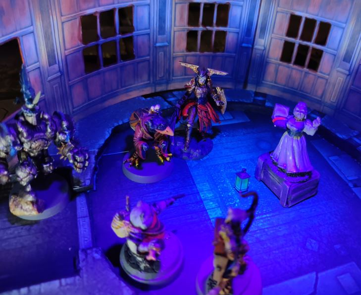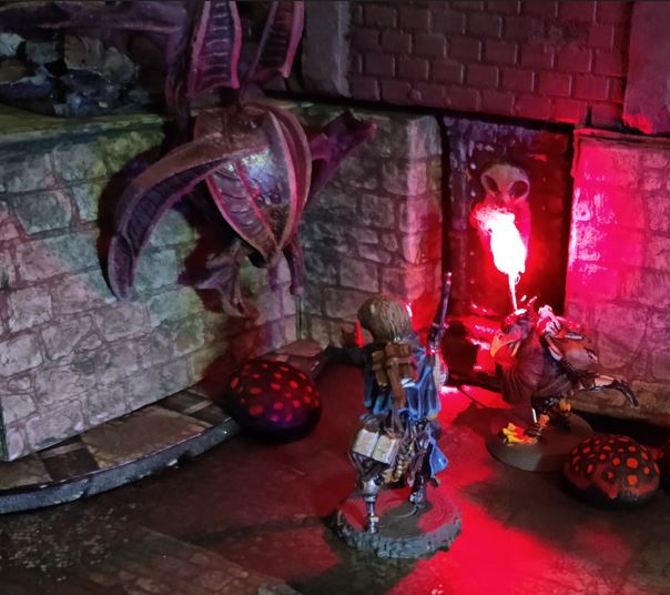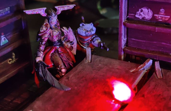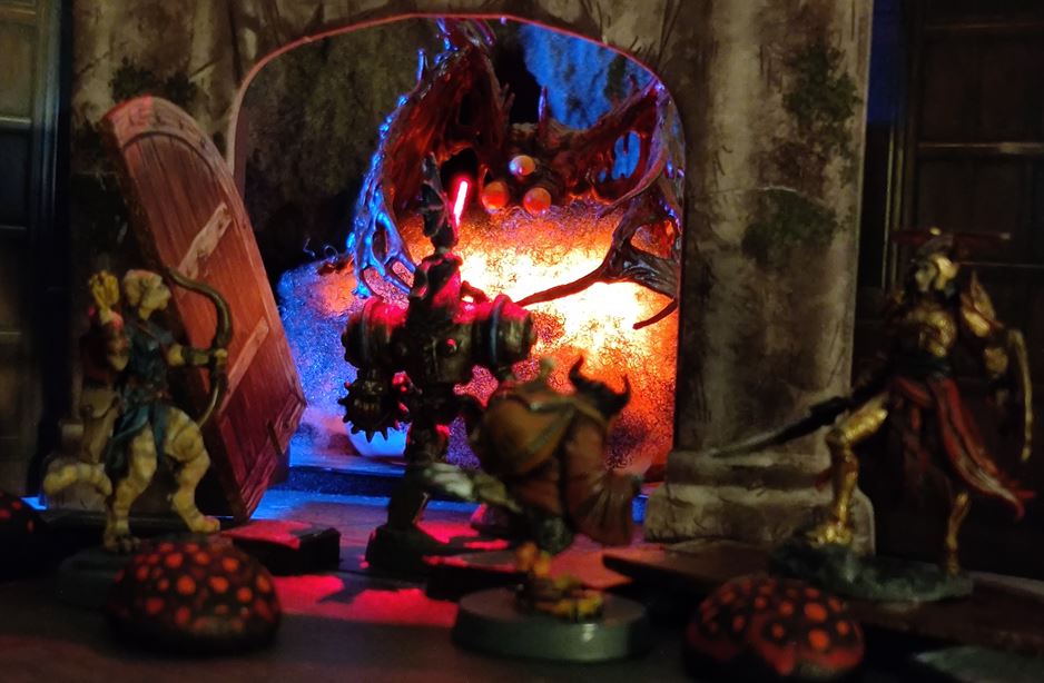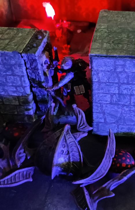 Squalor uses his Heart of Fire to drive the creature off, and everyone proceeds out onto the moonlit patio.