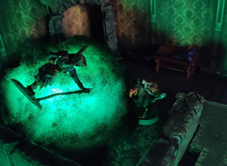 The door suddenly crashes inward! As the crew dive out of the way, a massive, horrid Spore King lashes at everyone inside!