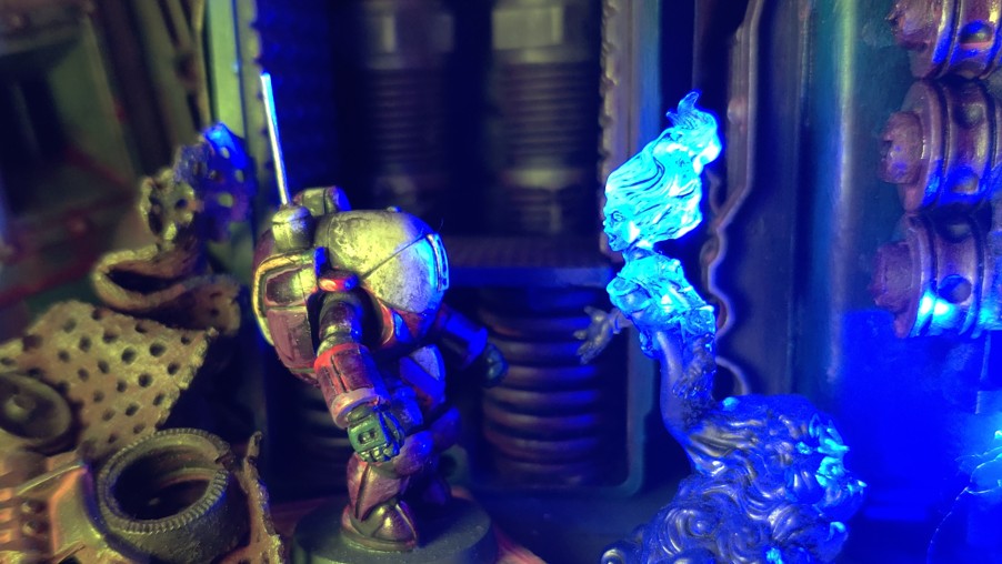 her own reflection, now a glowing ghost of plasma!