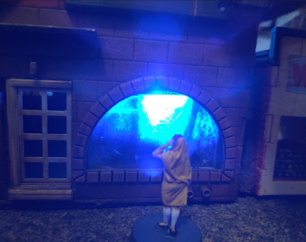 Outside the cafe, this dimension's Eloise- "Shelly"- peers in through the window at the commotion.
