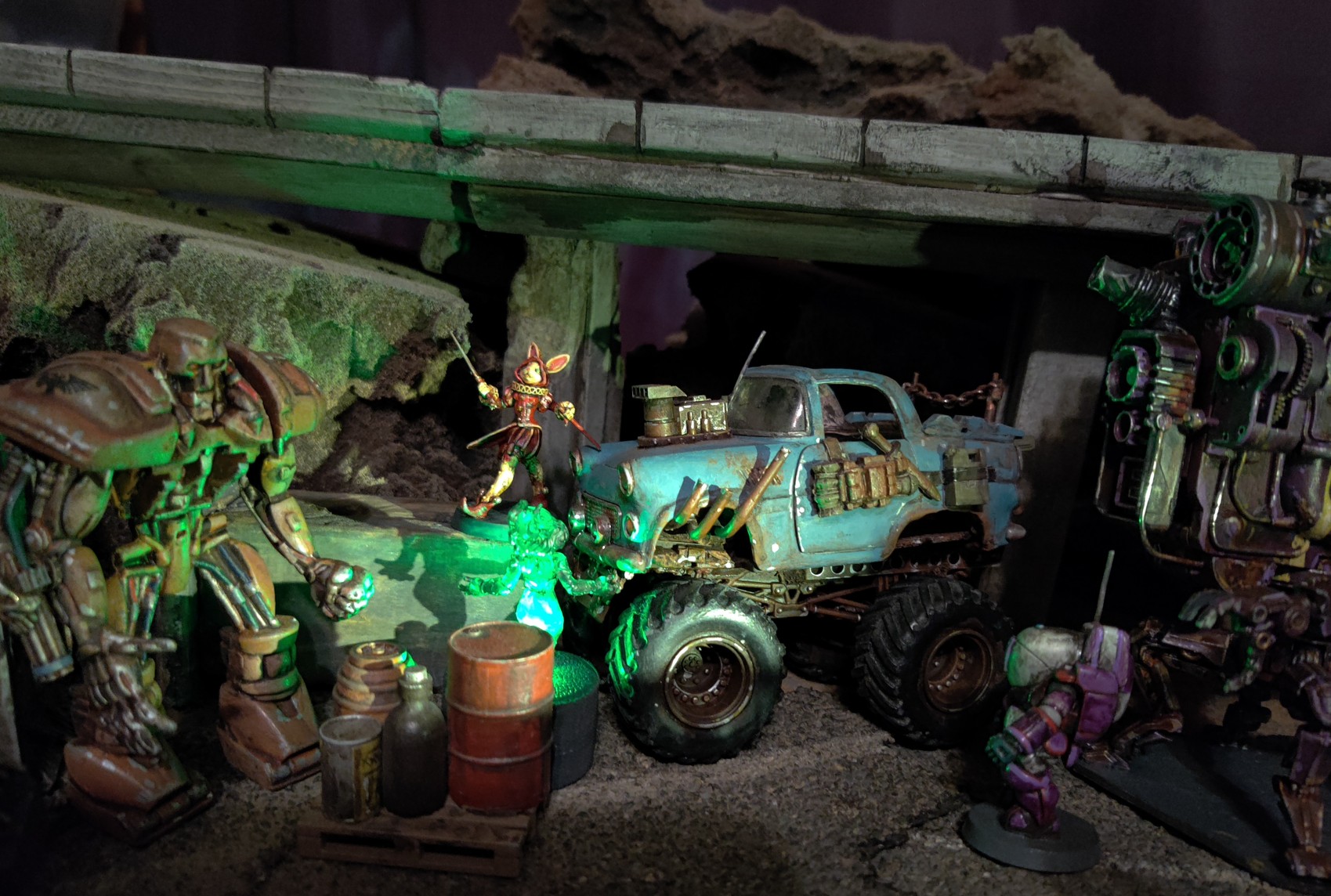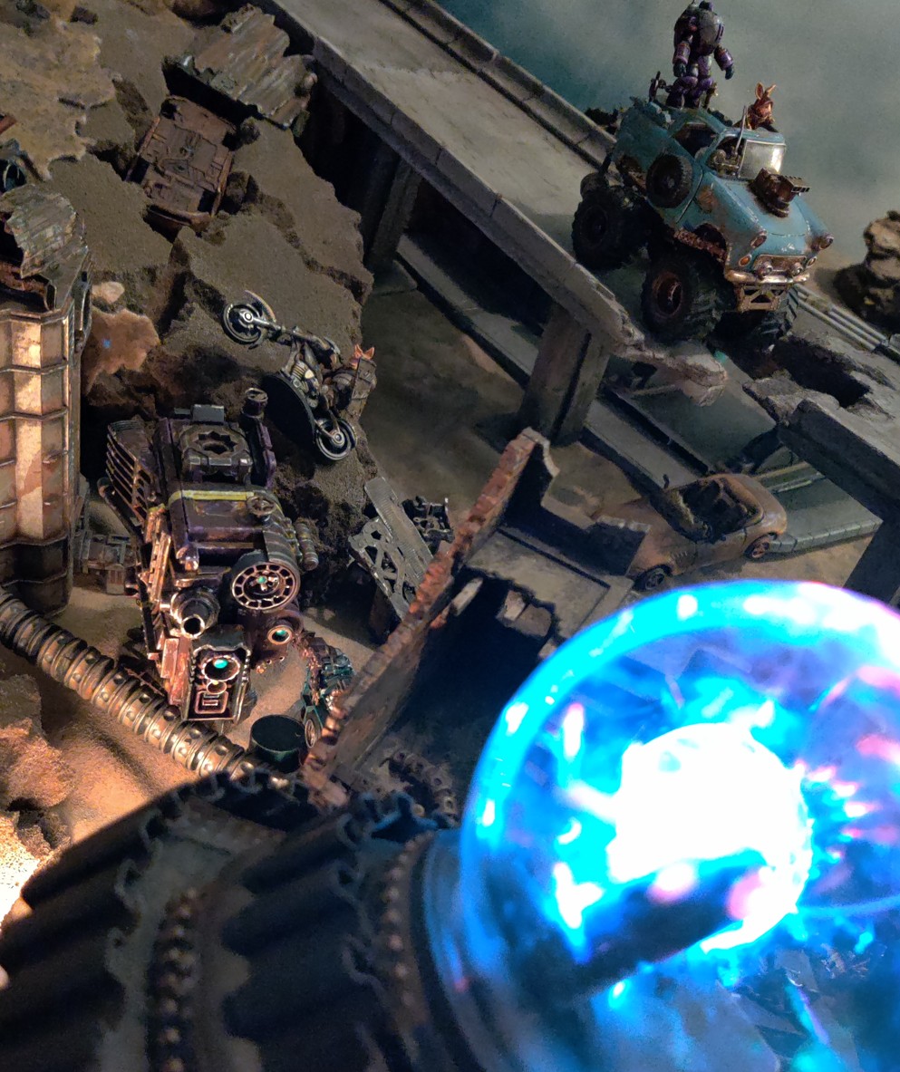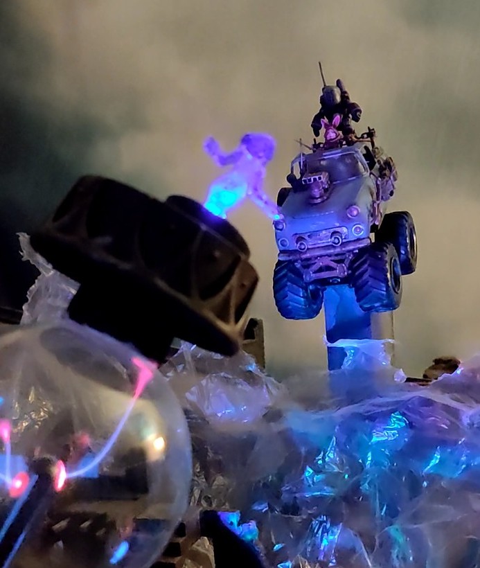 As the crew approach the enemy outpost, Ellie sees Road Hogs siphoning off power from the turbine into... what could only be the S.L.A.P.R.! Apparently when warping out of the Scavlands, the machine must have crashed out here. The Road Hogs are trying to turn it on, but don't fully know what it actually does...