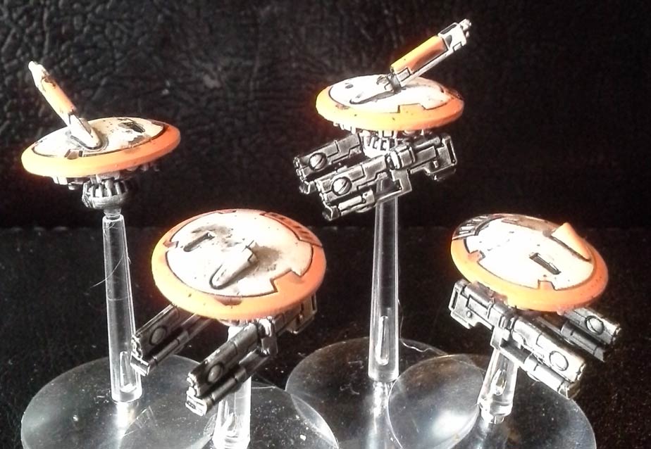heavily inspired by Warhammer Tau Drones, so I painted some up to match.