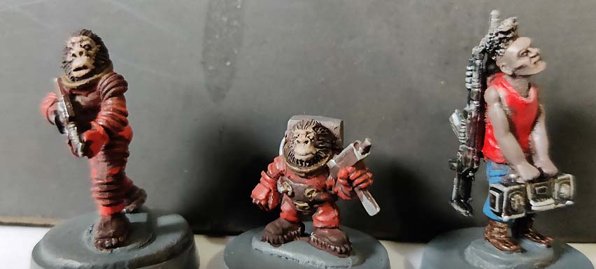 A couple spacesuited Gorillas from Eureka minis, and a boombox toting model I found in a sale bin, with extra gear added on.