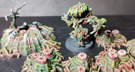 Walking plant (Mantic) and some mutant vegetation (Tyranid spore terrain).