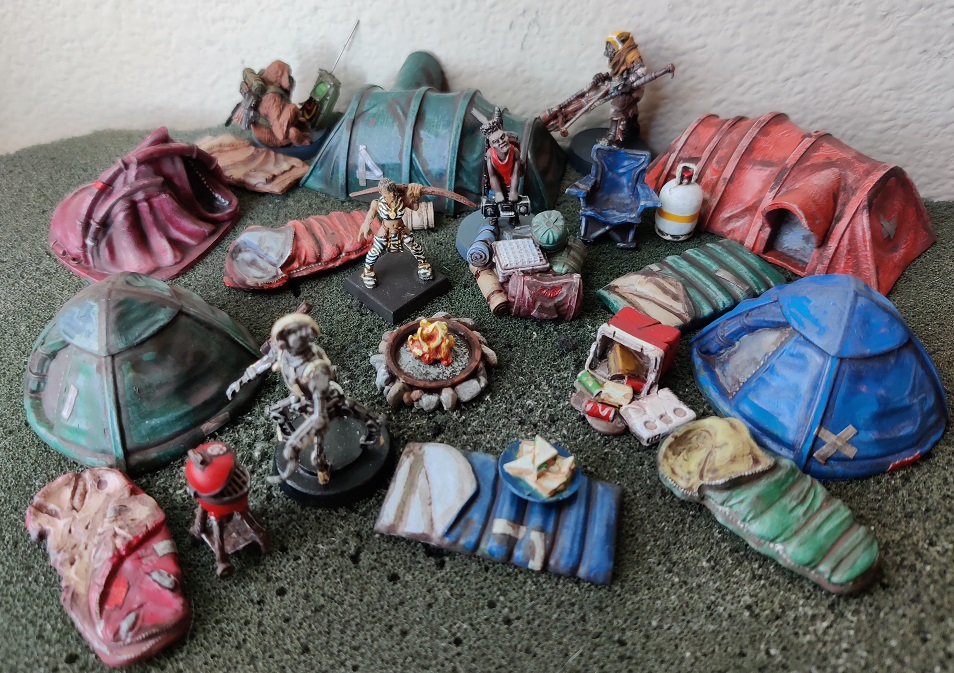 friendly or enemy camp. Models from Mantic- embellished with duct tape