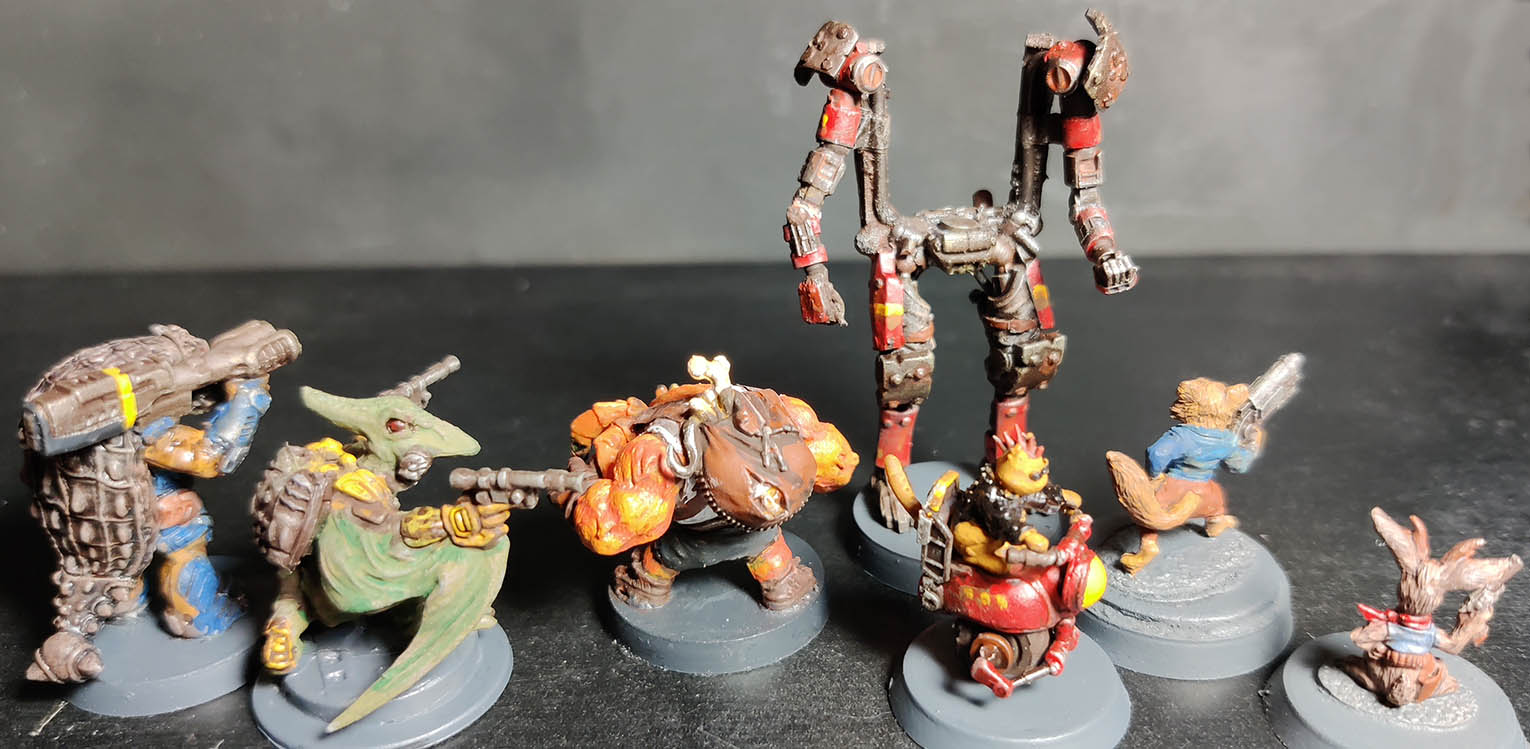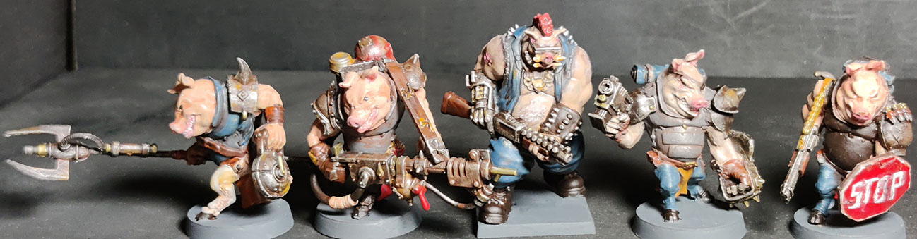 To make these Porkers, I converted Wrath of Kings Teknes figures.