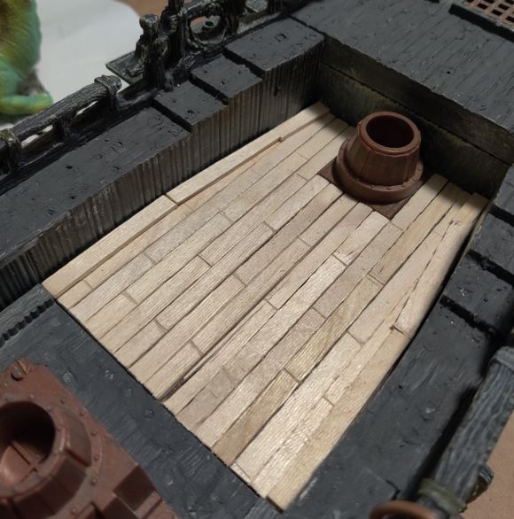 To complete this Flying Dutchman, one of the decks was replaced with fiberboard detailed with coffee stir sticks.