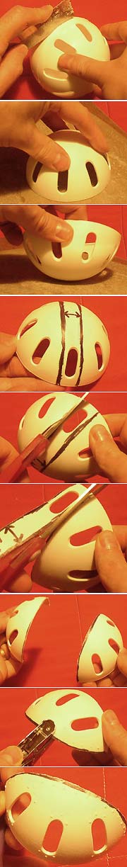 need to trim a strip out of the middle of the half-ball, creating two smaller