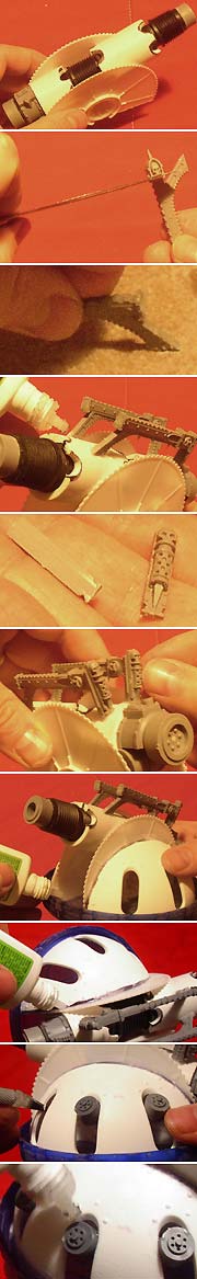 Now glue the large tank wheel to the end of the generator cover, rivets