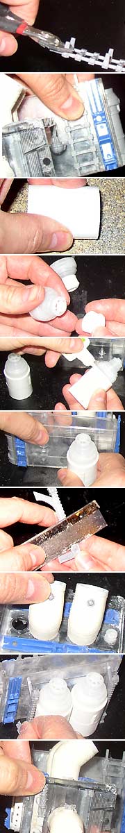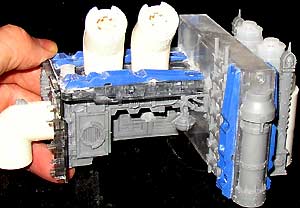 And finally, that tiny little detail piece from the Basilica sprue (I call it an exhaust). Glue it to the short side of the Ventilator, offset from the pipe, for a hint of industrial detail. |