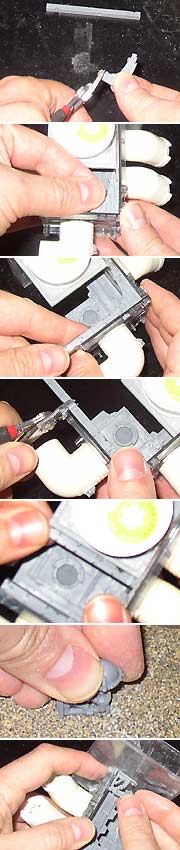 This enables you to glue it into the front inside corner, forming a bracket between the roof and the tape box as shown here. |