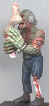 Snack time! This simple conversion makes even me feel uncomfortable. Corman would be proud... I paint my zombies olive green, then drybrush them with tan and do red washes. It's a quick way to get that decayed look, and there's no mistaking them for regular troops either! | ![]() |