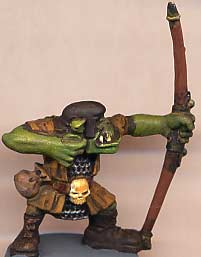 I wanted some archers for the warband (still on the cheap mind you), so I used natural colors to paint up a couple plastic orc archers I had kicking around. Browns and greens define my Savage orcs, with highlights of bone for contrast. Even with tough, hard hitting fighters like Orcs, it never hurts to have some ranged weapons in the city of the Damned... | ![]() |