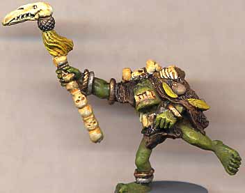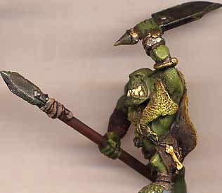 This savage orc has been armed with weapons from the plastic orc regiment sprue- a spear and a huge knife. A minor conversion that still has some personality to it. |