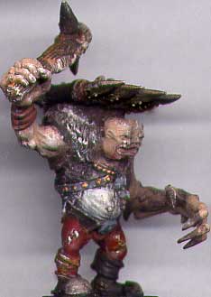 Another Ogre metal body. Chaos warrior right arm (mace has an additional head from the new Lizardmen). Left arm is from the mutations sprue. Head is a filed down Ork head. |