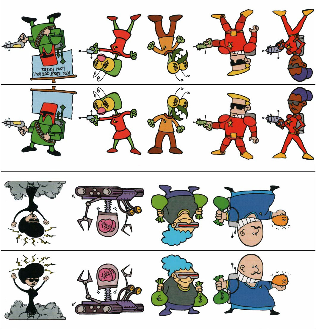 Print, cut out, and fold- these represent your character's position on the board as you move from room to room! All artwork by John Kovalic.