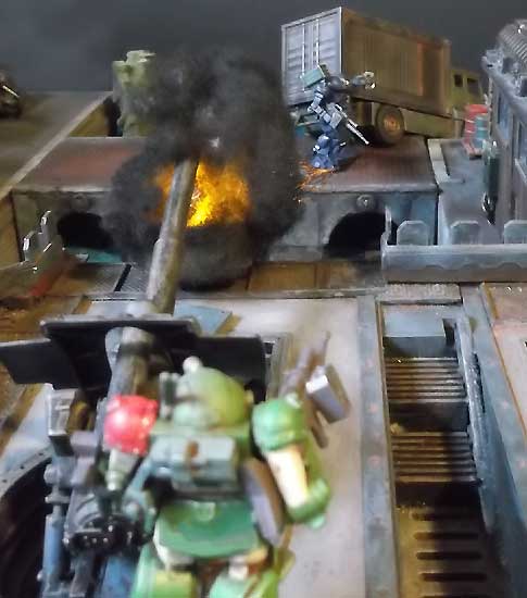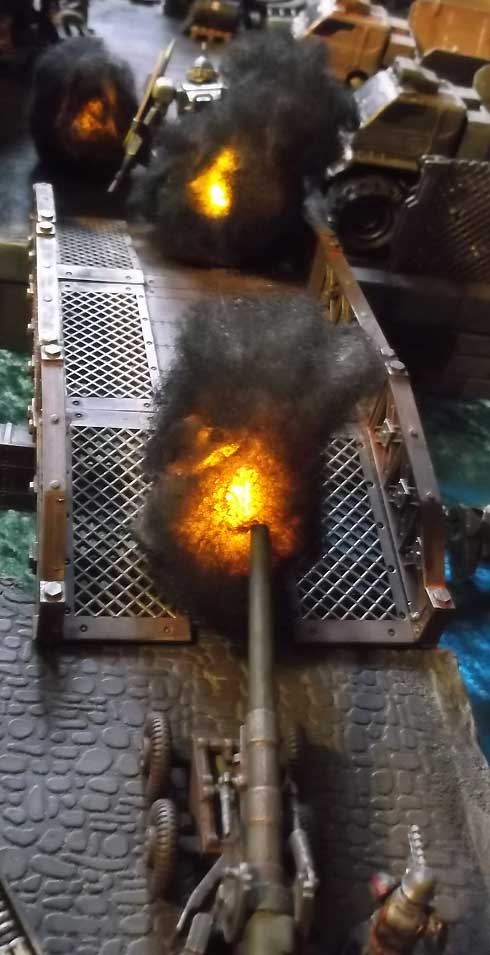 the field gun crew, blowing them apart. Quey dives under the
